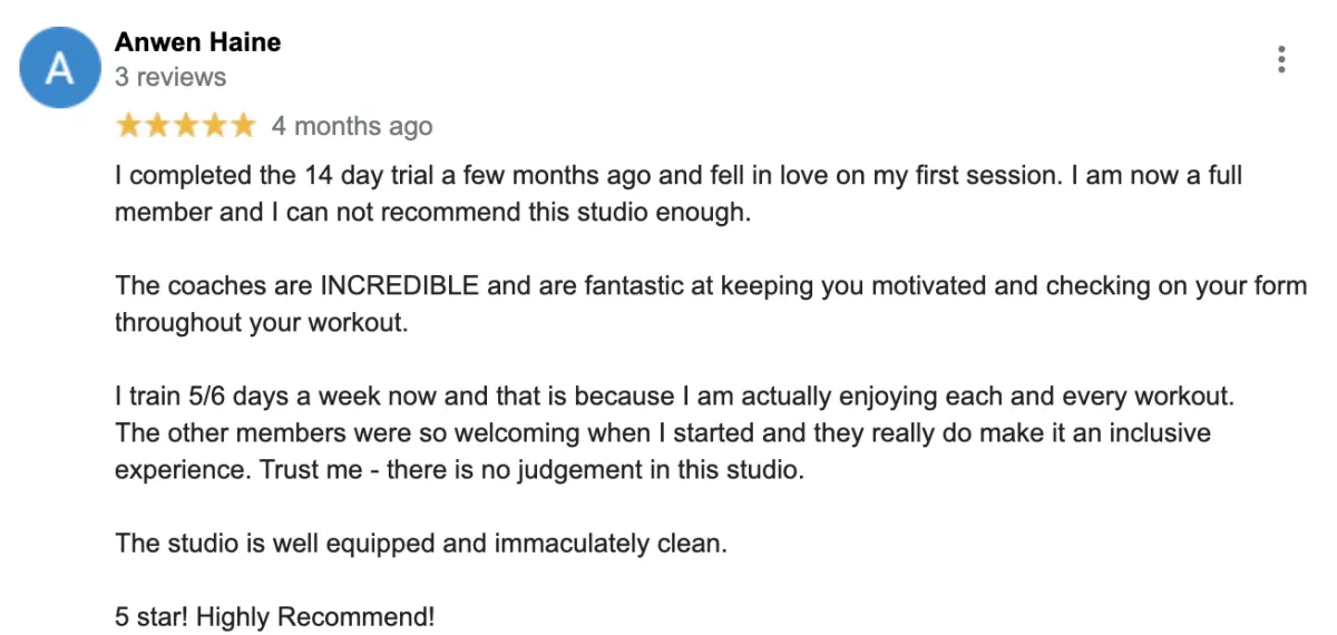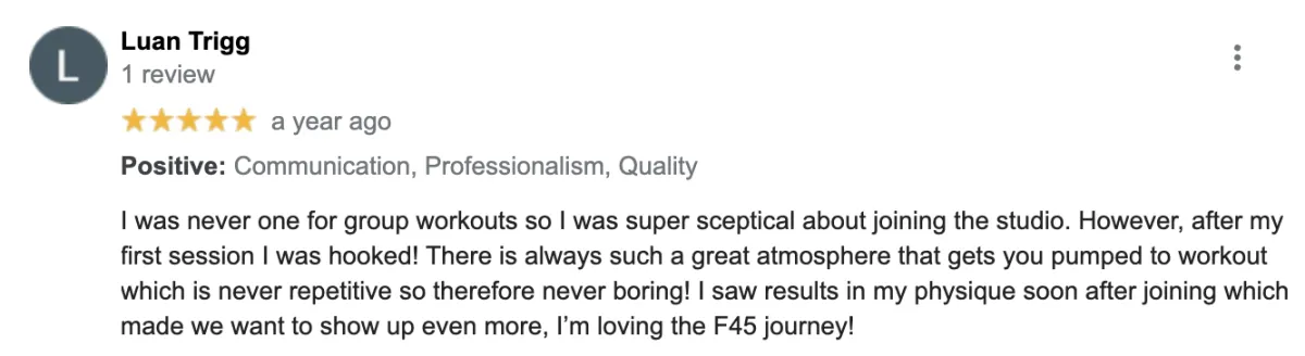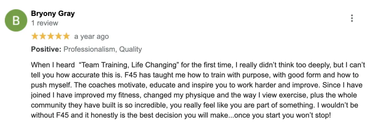 Whatever your level of fitness - whether you're a frequent gym bunny or complete fitness newbie, F45 was designed to get you RESULTS! And you'll leave every visit with a smile on your face!